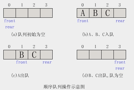队列是一种操作受限制的线性表,它只允许在表的前端(front)进行删除操作,而在表的后端(rear)进行插入操作。进行插入操作的端称为队尾,进行删除操作的端称为队头。 队列中没有元素时,称为空队列。在队列这种数据结构中,最先插入的元素将是最先被删除的元素;反之最后插入的元素将是最后被删除的元素,因此队列又称为“先进先出”(FIFO—first in first out)的线性表。