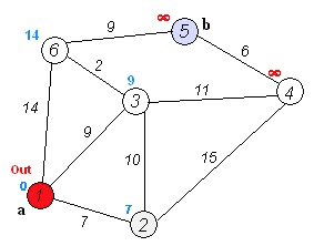 第二组为其余未确定最短路径的顶点集合(用U表示),按最短路径长度的递增次序依次把第二组的顶点加入S中。在加入的过程中,总保持从源点v到S中各顶点的最短路径长度不大于从源点v到U中任何顶点的最短路径长度。此外,每个顶点对应一个距离,S中的顶点的距离就是从v到此顶点的最短路径长度,U中的顶点的距离,是从v到此顶点只包括S中的顶点为中间顶点的当前最短路径长度。